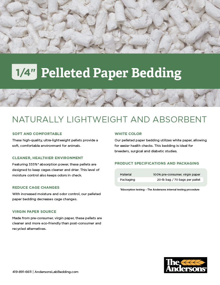 Our pelleted paper bedding utilizes white paper, allowing for easier health checks. This bedding is ideal for breeders, surgical and diabetic studies.